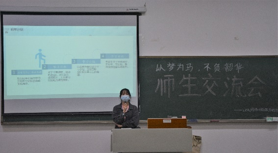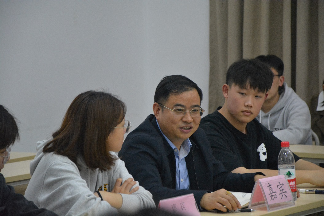 交流上,班级团支书向张书记汇报了上学期在学风建设方面和班级建设的情况;同学们敞开心扉,积极与张书记交流自己在学习生活中的收获及困惑。张书记就大家的困惑,进行耐心地解答,同时为帮助同学们取得更好地发展,他提出了四点建议:一是要学会学习,树立终身学习习惯;二是要学会总结,找寻成长过程中一些规律性问题;三是要学会团结,珍惜同学之间共同学习生活的缘分;四是要学会自律,强化目标管理和实践管控。