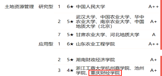 由全国第三方大学评价研究机构艾瑞深校友会网发布的 2022中国大学一流专业排名,我校土地资源管理专业入围“公共管理类”专业土地资源管理应用型四星(A+)排名。