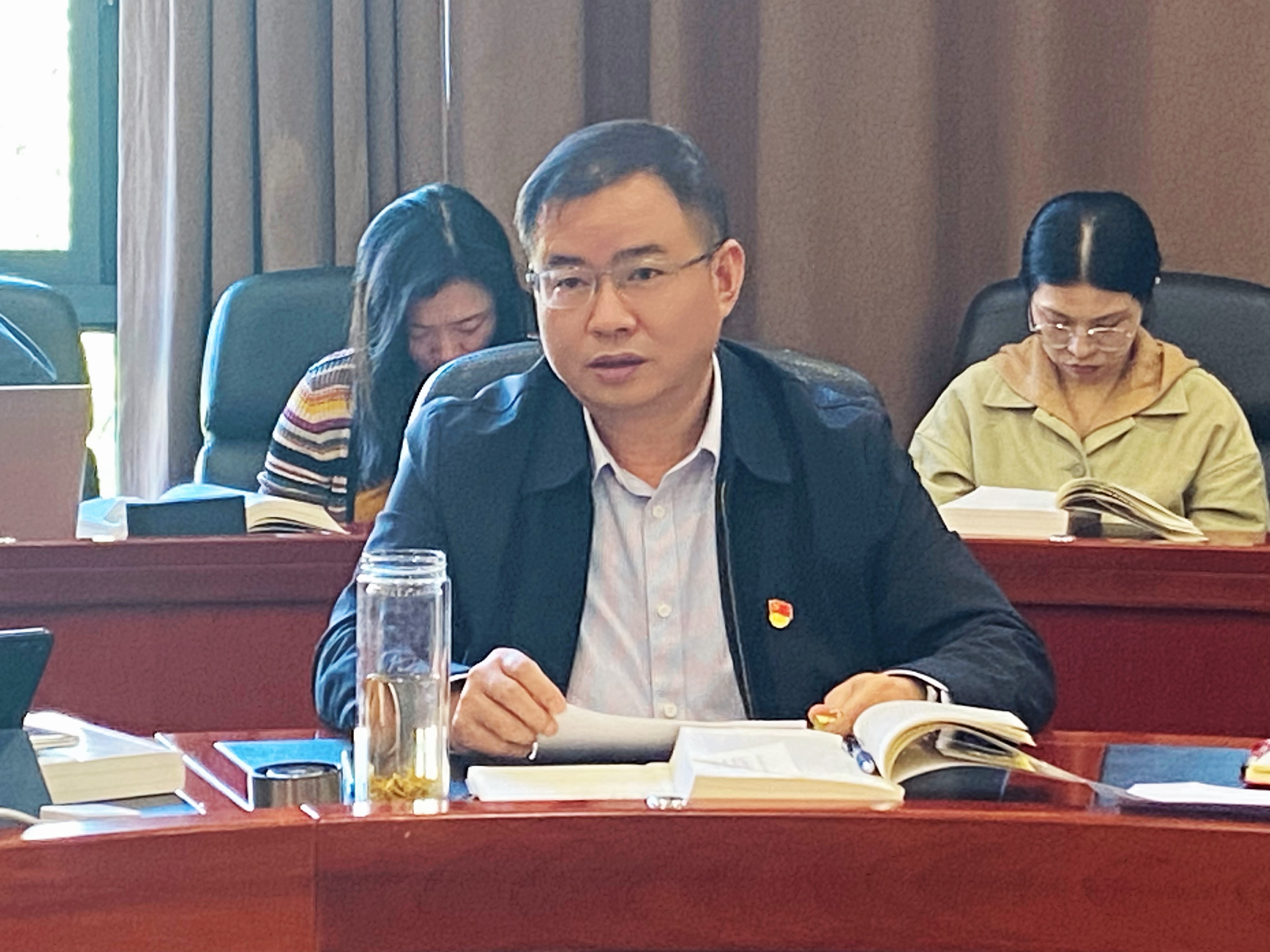 会上,房朝君、张立、张红梅三位同志分别领学《习近平谈治国理政》第五卷重点章节,结合工作实际分享学习心得。房朝君同志聚焦“推进国家安全体系和能力现代化”“坚持和加强党中央集中统一领导,把党的自我革命进行到底”作了分享;张立同志围绕“进一步全面深化改革”“因地制宜发展新质生产力,实现高质量发展”“一体推进教育科技人才事业发展”等主题,解读了理论内涵与学校改革发展的结合点。张红梅同志则从“发展新时代中国特色社会主义文化”“落实以人民为中心的发展思想,不断提高人民生活品质”出发,探讨文化育人与民生服务在校园的实践路径。研讨交流环节,甘雪梅、刘莉、李辉同志分别结合工作重点深入谈思考、话落实,凝聚起要以理论指导实践的共识。