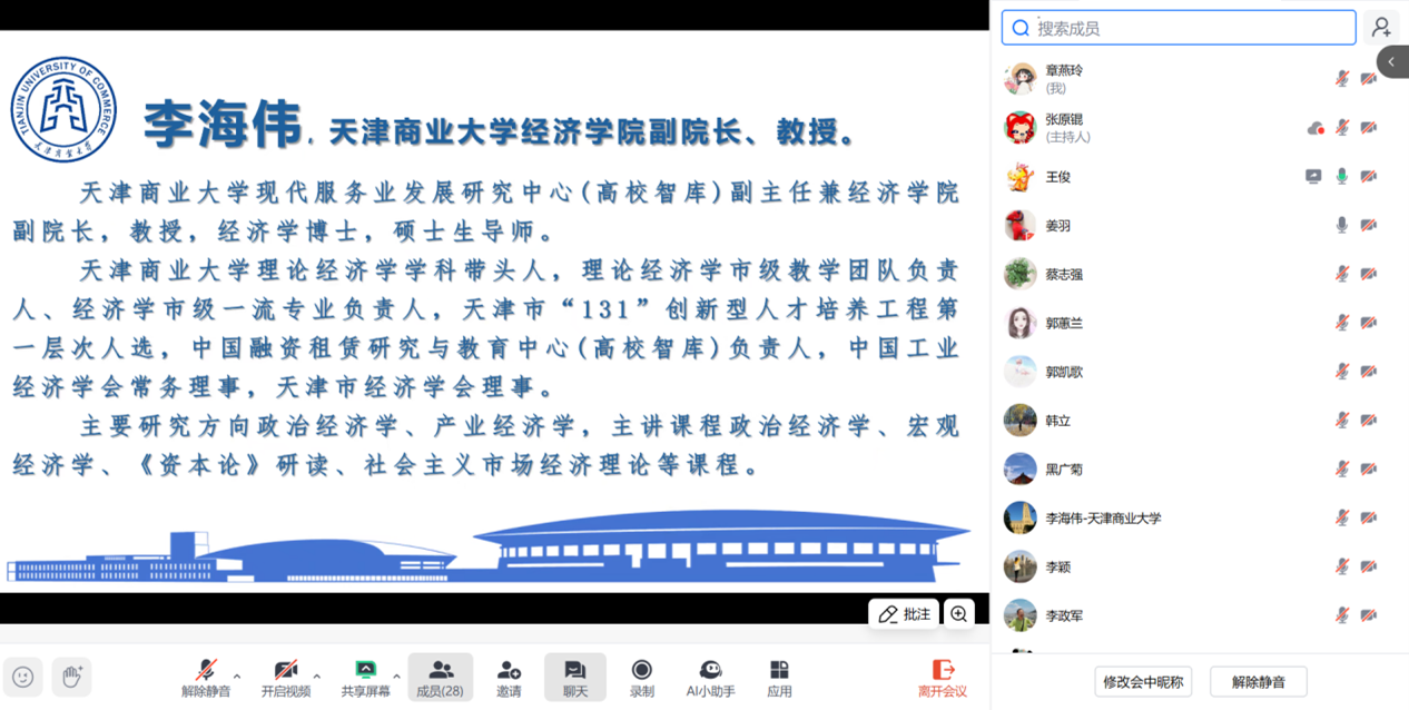 10月25日下午2点至4点,我校市级经济学课程群虚拟教研室联合发起的全国政治经济学集体备课会,通过腾讯会议(会议号:216112591)在线开展第二次集体备课会。参加这次备课会的高校有重庆财经学院、宁夏大学、天津商业大学、天津财经大学、天津师范大学、北方民族大学、西华大学、兰州财经大学、西京学院等九所高校30位政治经济学任课教师,围绕马工程《马克思主义政治经济学概论》第一章“商品”展开。此次备课会由天津商业大学政治经济学教研室组织,教研室主任王俊副教授主持。