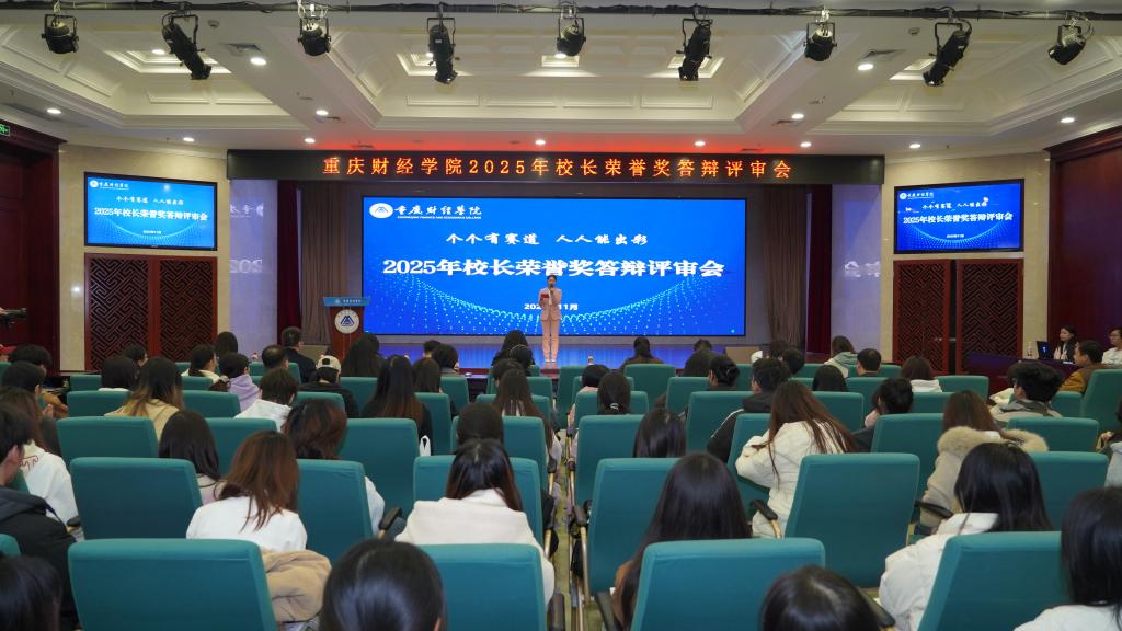 为充分发挥“五优人才”的示范引领作用,践行“个个有赛道,人人能出彩”的育人理念,11 月 20 日中午 12:30,重庆财经学院 2025年校长荣誉奖答辩评审会在学术报告厅隆重举行。校长吴华安、校党委副书记房朝君亲临现场指导,各二级学院学生工作负责人、辅导员代表及学生代表共同见证这场青春盛会,学校相关职能部门负责人组成专业评委团,对候选人进行公正评审。