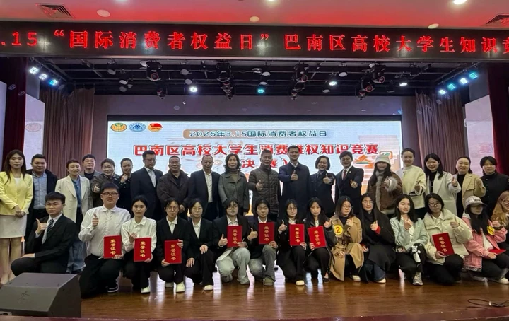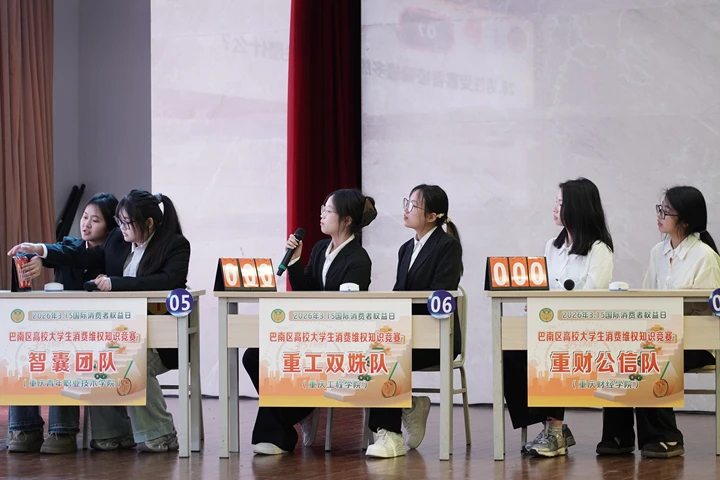为围绕3·15国际消费者权益日主题,进一步提升大学生消费安全意识与依法维权能力,营造健康文明的校园消费环境,3月16日,由重庆市巴南区市场监督管理局、重庆市巴南区消费者权益保护委员会联合主办,我校团委、物流工程学院(国际商学院)承办的巴南区高校大学生3·15消费者权益知识竞赛在我校学术报告厅成功举办。来自巴南区的7支高校代表队同台竞技,展开激烈角逐。