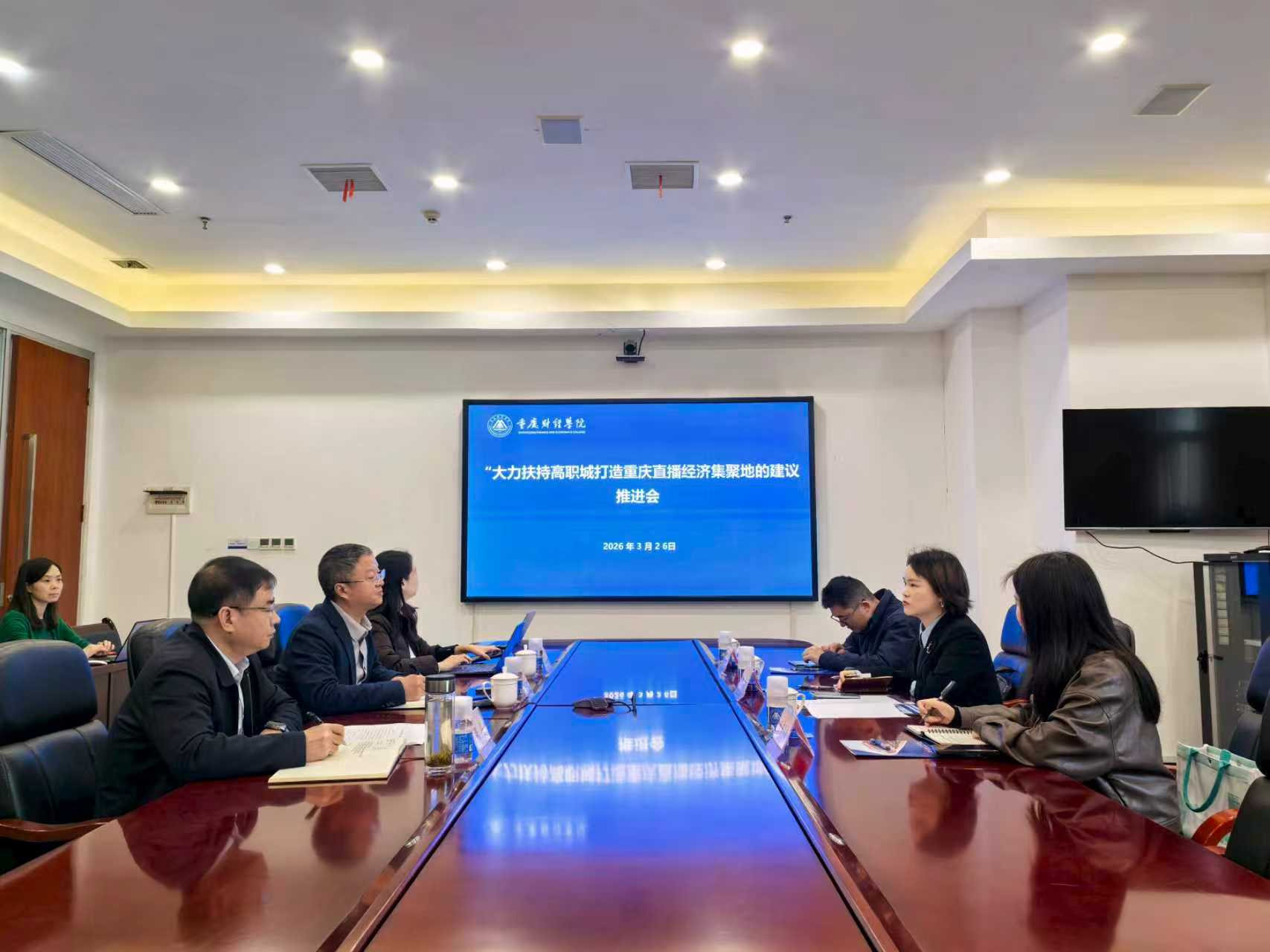 3月26日,巴南区商务委员会副主任马璨一行专程赴我校,就2026年巴南区两会期间巴南区人大代表、校长吴华安,巴南区政协委员、党委书记张毅分别提交的《关于大力扶持高职城打造重庆直播经济集聚地的建议》提案进行专题调研并召开座谈会。