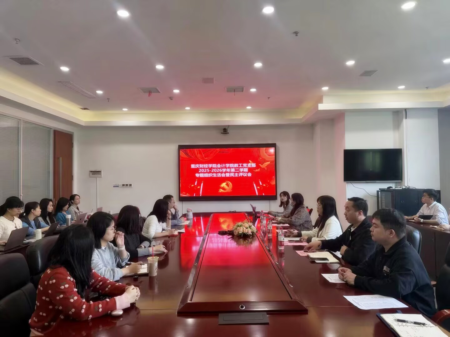 为深入学习贯彻党的二十届四中全会精神,严格落实中央八项规定精神,以优良作风助推学校合格评估工作落地见效,3月30日中午,会计学院教工党支部在行政楼2303会议室召开2025年度专题组织生活会暨民主评议党员会议。校党委委员、副校长李春雷莅临指导,会议由党总支书记宋钰静主持,全体教工党员参会。