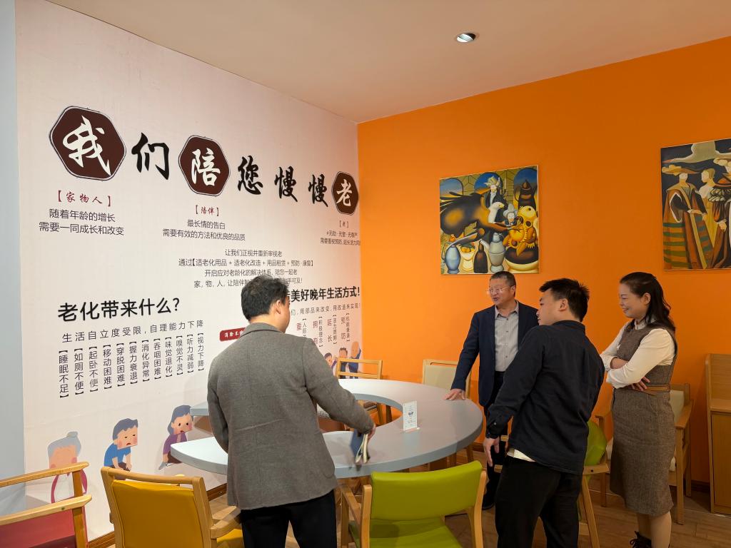 在齐力智能家居产品展厅,企业负责人详细介绍了公司发展历程、技术研发与市场布局,重点展示了适老化家居、智能康养辅具、健康监测设备等系列产品。调研人员认真听取产品功能、应用场景与市场前景介绍,现场体验智能适老产品的便捷性与安全性,对企业在适老化产品研发、场景化应用等方面取得的成果给予高度评价。