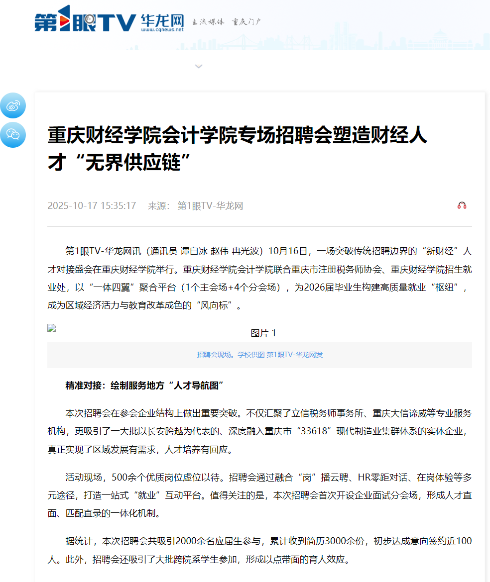 10月16日,一场突破传统招聘边界的“新财经”人才对接盛会在重庆财经学院举行。重庆财经学院会计学院联合重庆市注册税务师协会、重庆财经学院招生就业处,以“一体四翼”聚合平台(1个主会场+4个分会场),为2026届毕业生构建高质量就业“枢纽”,成为区域经济活力与教育改革成色的“风向标”。