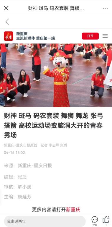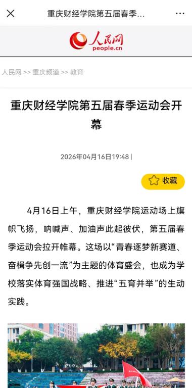 与此同时,通过深化校地合作,重庆财经学院正全力打造“以体健体、以体育智、以体育心”的育人新格局,让体育精神融入校园文化血脉。正如校长吴华安所说:“希望每一位学子都能在‘个个有赛道,人人能出彩’的环境里,全面发展、成长成才。”