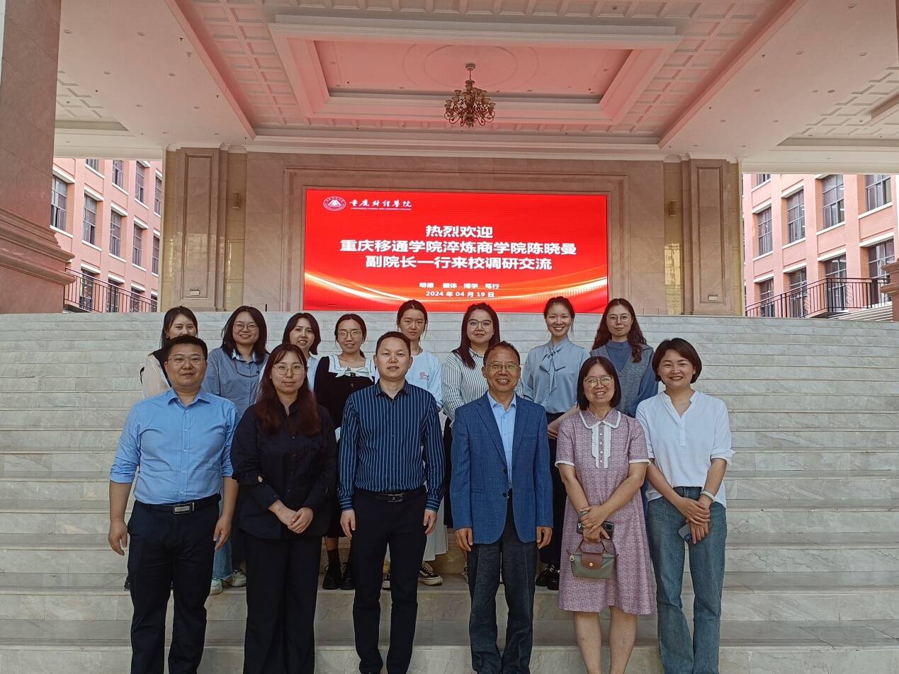 为深化校际协同合作,推动一流课程建设和产教深入融合,4月19日,重庆移通学院淬炼商学院陈晓曼副院长一行与我校经济学院开展沟通交流。我校经济学院院长李政军教授、副院长王路云进行了热情接待。