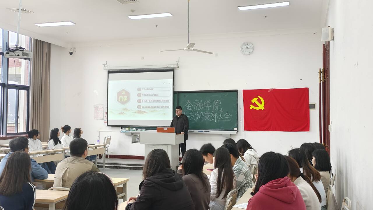 为进一步充分发挥“红色金融育人联盟会员单位”平台优势,弘扬红色金融精神,建设服务型党支部,4月22日,我校金融学院学生第一党支部“服务型支部建设交流会”在教学楼1311教室顺利举行。金融学院学生第一党支部书记于成江以及支部全体学生党员参加了本次交流会。
