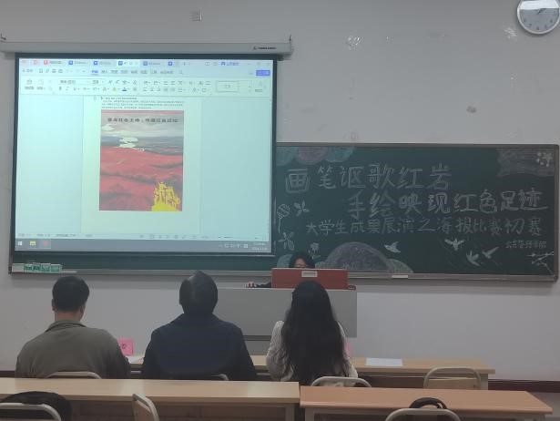 为深入弘扬与传承红岩精神,学习贯彻党的二十届三中全会精神,展现新中国成立75周年以来我国的发展成就,由我校马克思主义学院主办、公共管理学院承办的第十二届“大思政课”铸魂育人活动之“画笔讴歌青春红岩,手绘映现红色足迹”大学生成果展演海报比赛初赛,于11月8日中午在教学楼1402、1418教室顺利举行。陈开江老师、黄涛老师、高雪莲老师、易春虎老师、苏成容老师以及阳圆老师应邀担任评委。