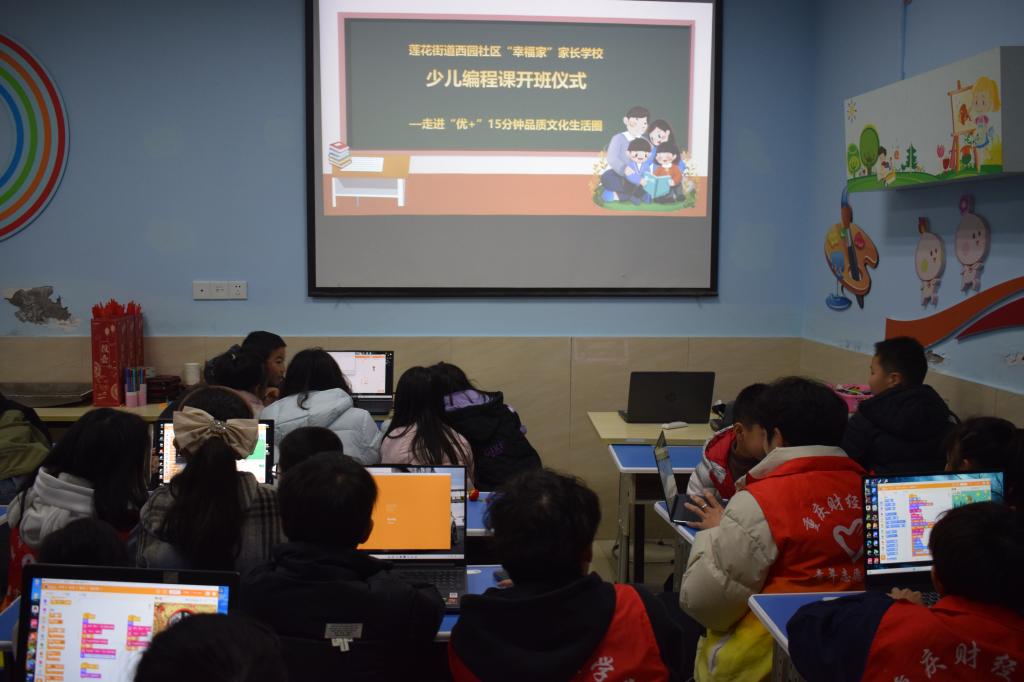 为深入贯彻国家“十四五”数字素养培育战略,赋能乡村基础教育数字化转型,助力青少年科技素养提升。3月16日,我校“软小青”社会实践团10余名志愿者走进巴南区云篆山水公租房西园社区,开展"少儿编程"志愿服务活动。本次活动依托国产编程软件Mind+平台,为20余名社区儿童打造沉浸式编程学习体验,帮助社区儿童开启智慧科技的大门。
