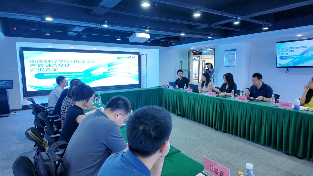 曾真处长详细介绍了学校产教融合工作成果及学校产业园建设情况,表示学校始终坚持以产教融合为突破口,推动教育链、人才链与产业链、创新链有机衔接。她诚挚欢迎巴味渝珍公司入驻学校产业园,共同打造产教融合新标杆。殷骆骏楠副院长全面介绍了新媒体艺术学院的专业建设、师资力量及产教融合特色,强调学院将充分发挥会展经济与管理、数字媒体艺术等专业优势,与巴味渝珍公司深度合作,培养“懂农业、通数智、善创意”的复合型人才。
