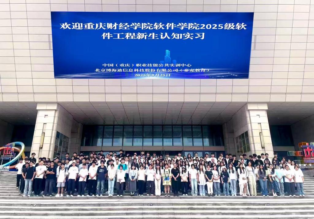 大会结束后,在老师们的带领下,2025级软件工程专业全体新生前往中国(重庆)职业技能公共实训中心参观。该实训中心设备先进、实训环境完善,涵盖软件开发、人工智能、大数据等多个领域。参观过程中,同学们认真聆听工作人员讲解,了解各类实训项目的操作流程和应用场景。此次实地参观让同学们对软件工程专业在实际工作中的应用有了更直观的认识,进一步激发了他们对专业学习的兴趣和热情。