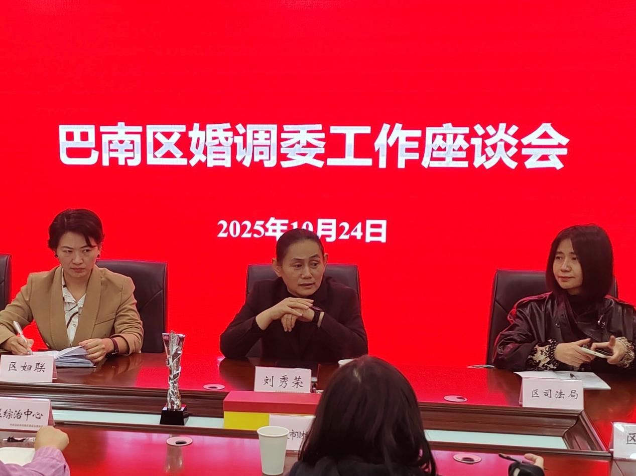 座谈会上,巴南区政协刘秀荣主席介绍了婚调委前期工作成效。她指出,由其打造的“巴姐睦家”调解品牌在今年全国婚姻家庭纠纷调解大比武中斩获全市银奖,已成为巴南区基层治理与民生服务的重要载体,也为我校开展实战化育人提供了有力支撑。