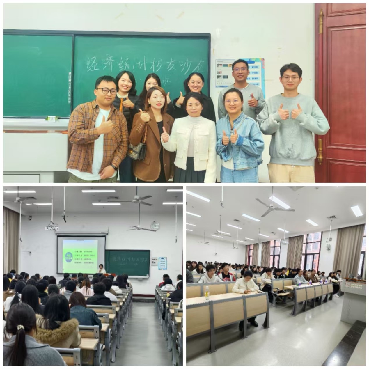 2025年11月2日下午,经济学院经济统计学专业2025级新生专业认知教育系列活动之校友沙龙在教学楼1306教室顺利举行。本次活动旨在帮助2025级普通本科与专升本新生尽快适应大学学习生活,增强专业认同,明晰职业发展方向。沙龙由经济统计系教师王利娟组织并主持,经济统计系主任熊萍、专任教师马雨、唐燕、数字经济专业教师刘云飞,以及全体2025级经济统计学专业本科新生和专升本新生共同参与。活动采用线上线下融合模式,共吸引344名师生参加,现场气氛热烈,交流深入。