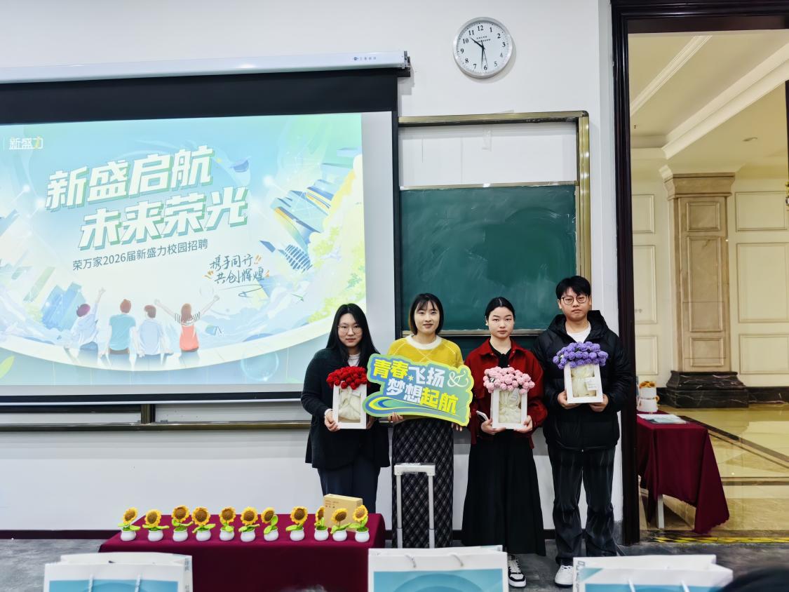 互动答疑与抽奖环节进一步点燃现场氛围。面对学生提出的 “岗位能力要求”“实习实践安排”等问题,人力行政经理与企业招聘团队耐心细致解答,消除学生职业规划中的困惑;穿插其中的抽奖活动,不仅为现场增添了轻松愉悦的氛围,更让学生感受到企业的人文关怀,进一步拉近了企业与学生的距离,为后续交流奠定良好基础。