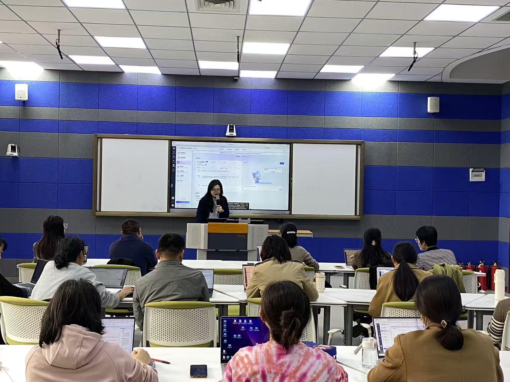 2025年11月4日,物流工程学院(国际商学院)在智慧教室1220举办了“AI赋能课程建设(教学改革)和教学质量月专题培训”活动。本次活动旨在深入贯彻学校“教学质量月”总体部署,积极探索AI在课程建设与教学改革中的创新应用,提升教师信息化教学水平,推动教育教学高质量发展。