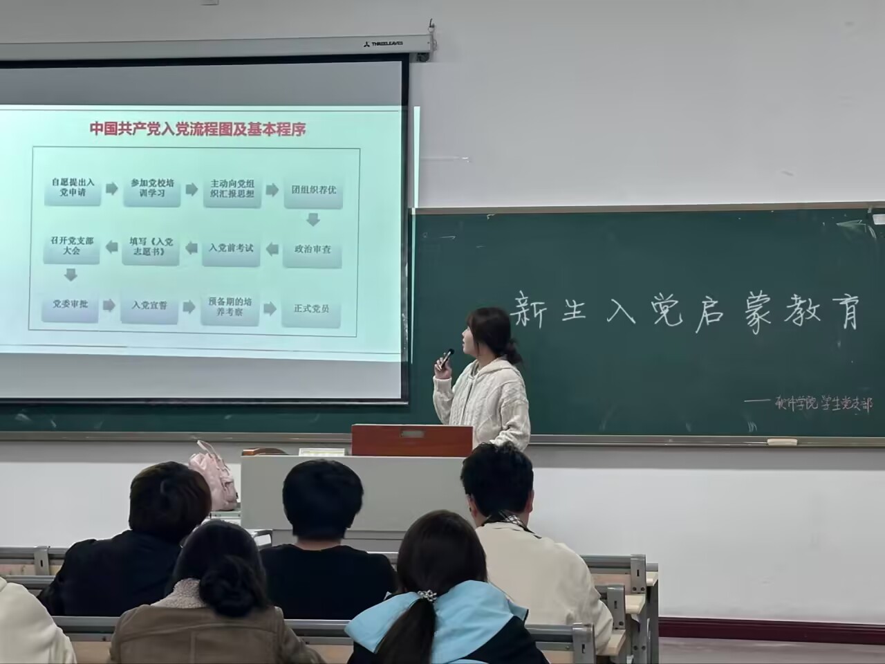 宣讲会上,宣讲人围绕“青年为什么要向党组织靠拢”这一主题,结合党的光辉历程与新时代青年使命,深入阐释了加入党组织的初心意义。同时,围绕党员发展标准、入党申请撰写、培养考察流程、转正审批等关键环节,系统解读入党全流程的核心逻辑与规范要求,体现了支部对发展党员工作规范性和严肃性的高度重视,帮助新生建立清晰的认知框架,明确努力方向。