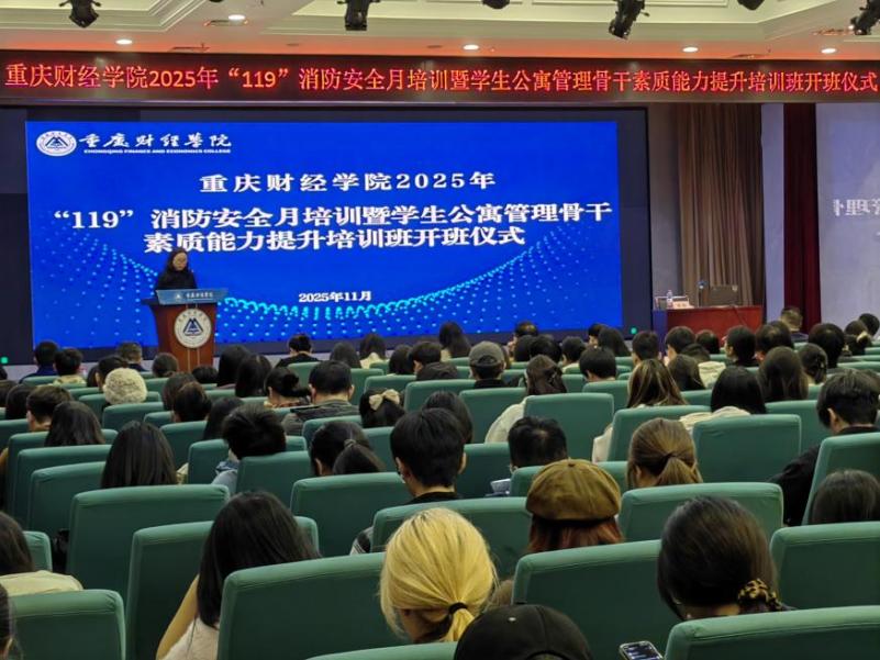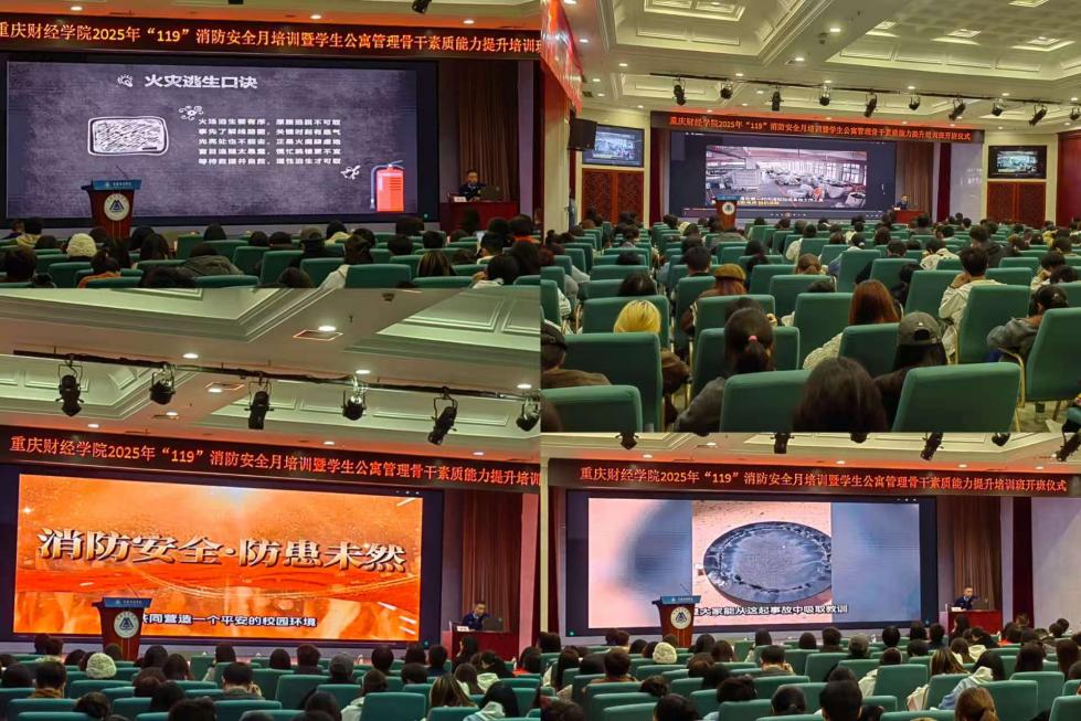 2025年11月11日中午,我校在学术报告厅开展2025年“119”消防安全月培训活动。校党委副书记房朝君、各部门办公室主任、各二级学院党总支书记、辅导员及学生宿舍管理骨干参加本次培训。