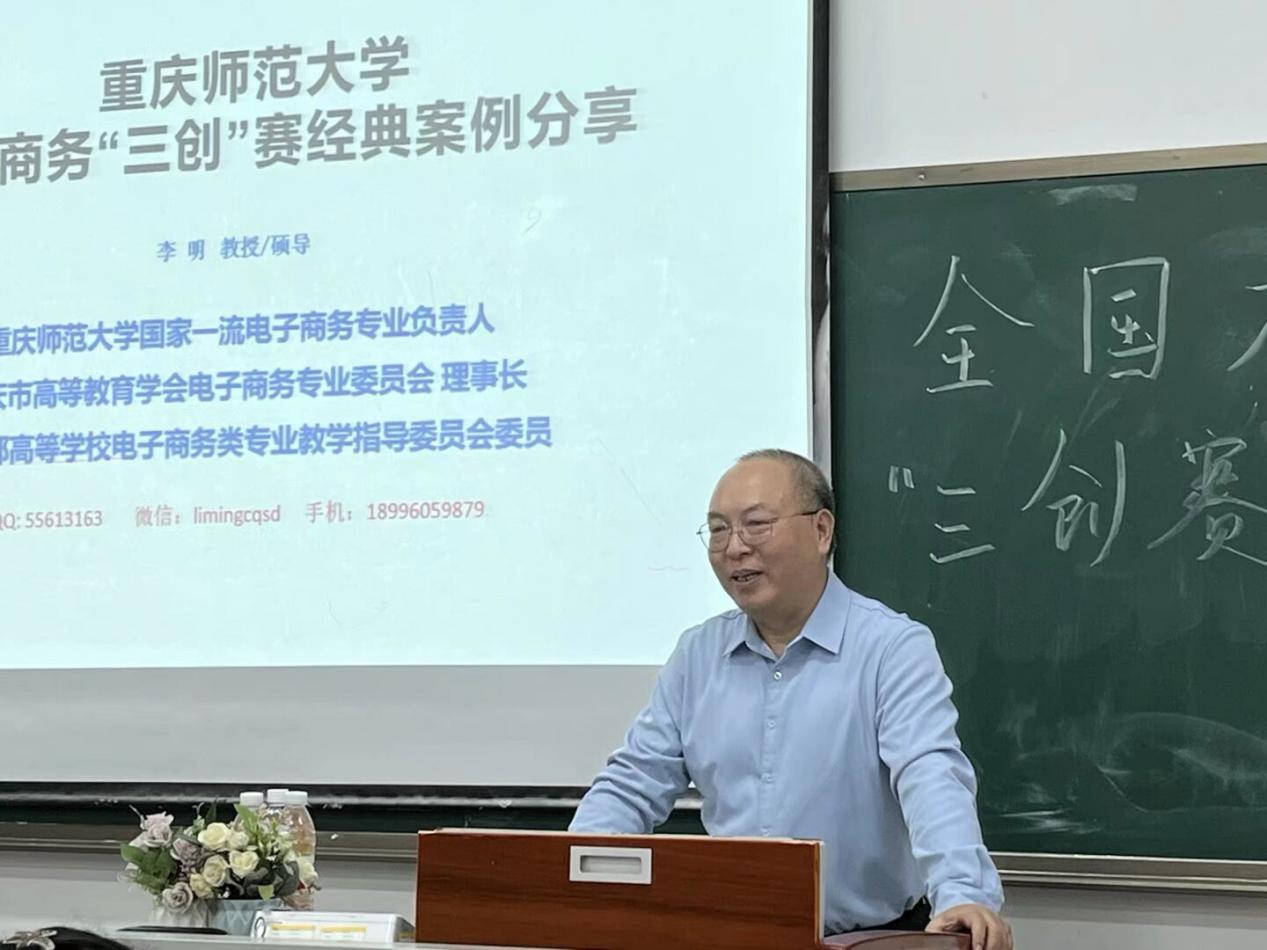 为了加强同学们对“三创赛”的了解,激发同学们对赛程的积极性,同时给予参赛同学备赛路上专业的指导。物流工程学院(国际商学院)总协会特邀重庆师范大学李明教授于11月13日19点至21点在重庆财经学院教学楼1406教室开座演讲,为同学们全方位解析三创赛,帮助同学扫除备赛路上的盲点。物流工程学院(国际商学院)副院长李占凤、电子商务教研室陈镜羽、张生锦老师及多位指导老师共同参与该讲座。