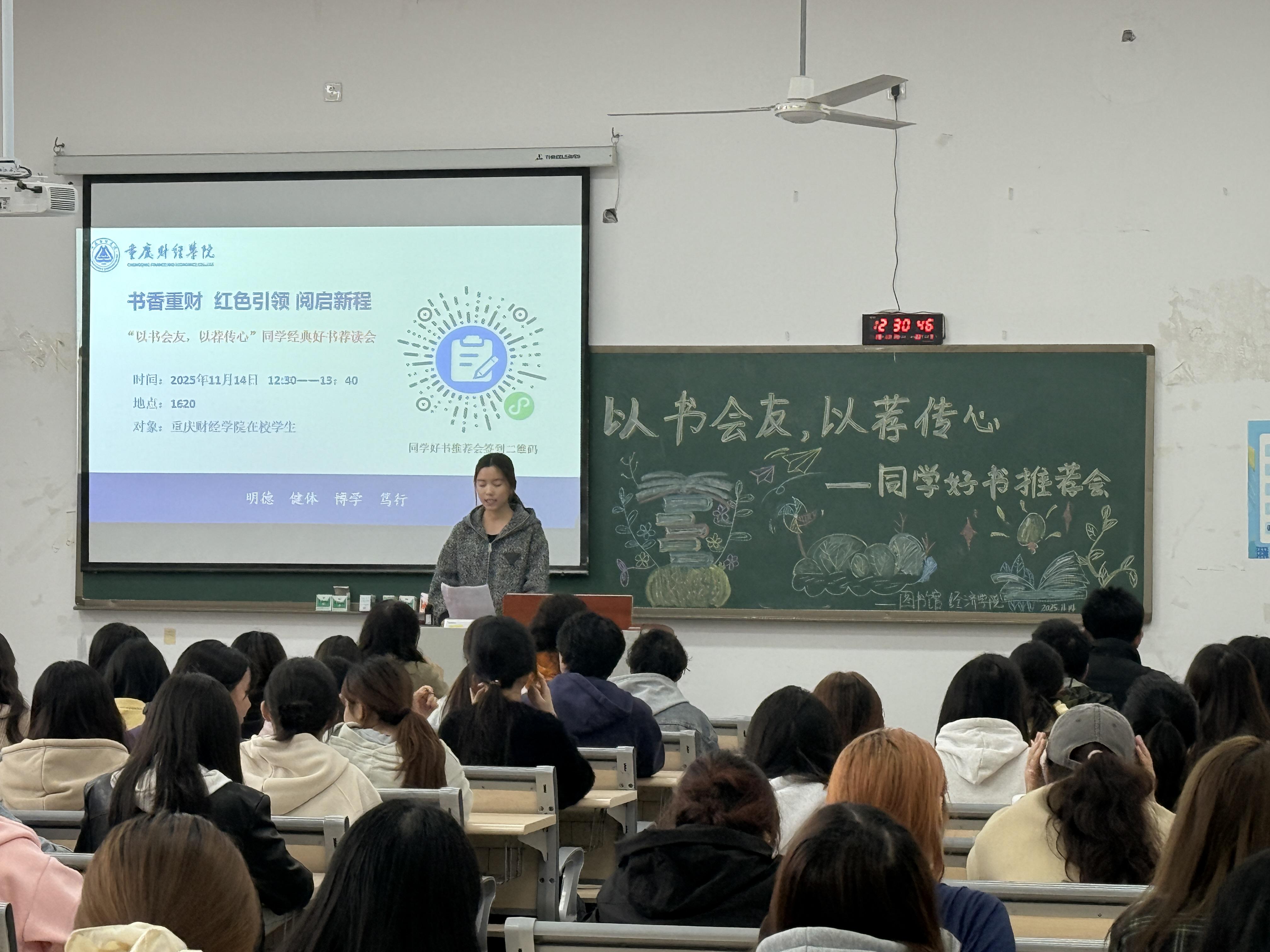 图寸家菊老师与蔡婷老师对活动的举办给予高度肯定,鼓励同学们以书为媒,坚持阅读、乐于分享,在墨香中沉淀自我、增长才干。此次好书推荐会不仅为同学们提供了展示与交流的平台,更以书为桥,传递阅读乐趣、凝聚思想共识,进一步推动了校园书香文化建设。未来,图书馆与经济学院将继续携手,打造更多优质阅读活动,让阅读成为校园生活的新风尚,让书香浸润学子成长之路。