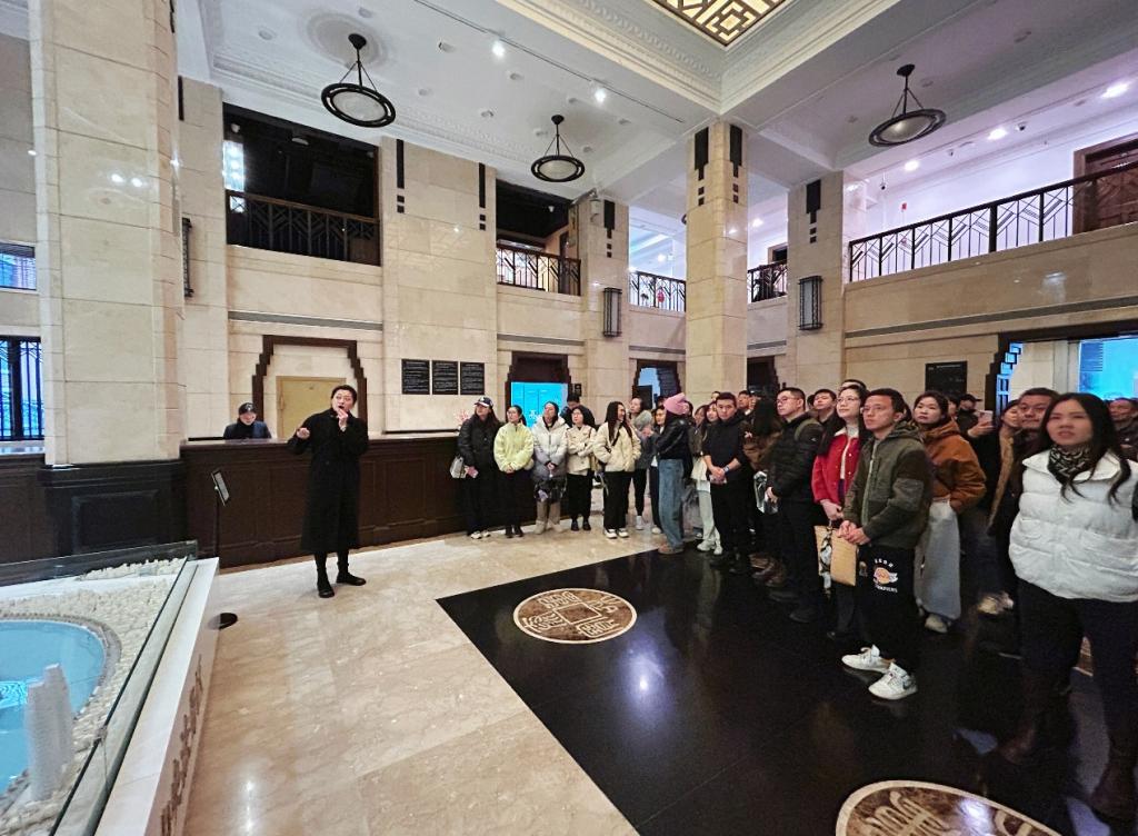 重庆金融历史博物馆坐落于有“西部华尔街”之称的重庆渝中区打铜街,馆内珍藏了大量珍贵的金融史料和实物,完整再现了重庆作为战时金融中心以及西部金融重镇的发展历程。在讲解员的引导下,教师们依次参观了“全球金融与重庆金融”、“抗战金融”、“民间金融”等主题展厅。从古朴的票号账本到现代化的金融票据,从抗战时期支撑国家经济命脉的金融体系到新时代重庆金融业的蓬勃发展,一幅波澜壮阔的金融历史画卷在老师们面前徐徐展开。