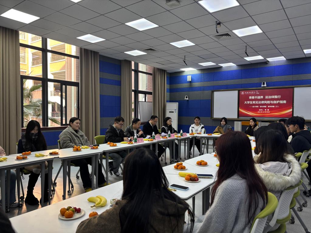 为深入落实立德树人根本任务,推动家校协同育人机制走深走实,切实提升大学生的法律素养与自我保护能力,11月28日下午4:00,会计学院在教学楼1220智慧教室开展“青春不越界,法治伴我行”主题家长课堂,特邀重庆市璧山区人民检察院党组副书记陈里担任主讲嘉宾。学院党总支副书记冉光波、学团办副主任陈晨、专职辅导员徐铭澧及50余名学生代表参与。
