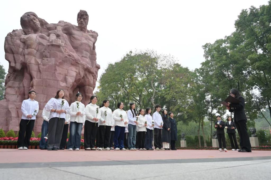 | 图五 重庆财经学院师生在红岩魂广场为11.27殉难者献花 |