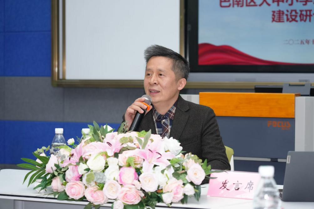 在巴南区教委相关领导陈玲致辞中,对重庆财经学院主动承办此次研讨会、积极服务区域教育发展的举措表示感谢。她指出,重庆是一座英雄的城市,红岩精神是重庆最宝贵的红色基因和精神财富。推进大中小学思政课一体化建设,是落实立德树人根本任务的战略举措。要深刻把握不同学段学生的认知规律和成长需求,将抗战历史的波澜壮阔与红岩精神的深刻内涵,系统、科学、梯次性地融入思政课程与日常思想政治教育之中,形成启蒙、体验、认知、践行育人链条。要以教师队伍为关键,推动跨学段协同,搭建大中小学思政教师共同体,开展协同备课、专题培训及教学技能竞赛。要以协同机制为保障,在教育系统内成立指导小组,联动多部门共建红色教育实践基地,开发研学课程,每季度召开推进会。以期形成上下联动、内外协同的育人合力,共解难题。