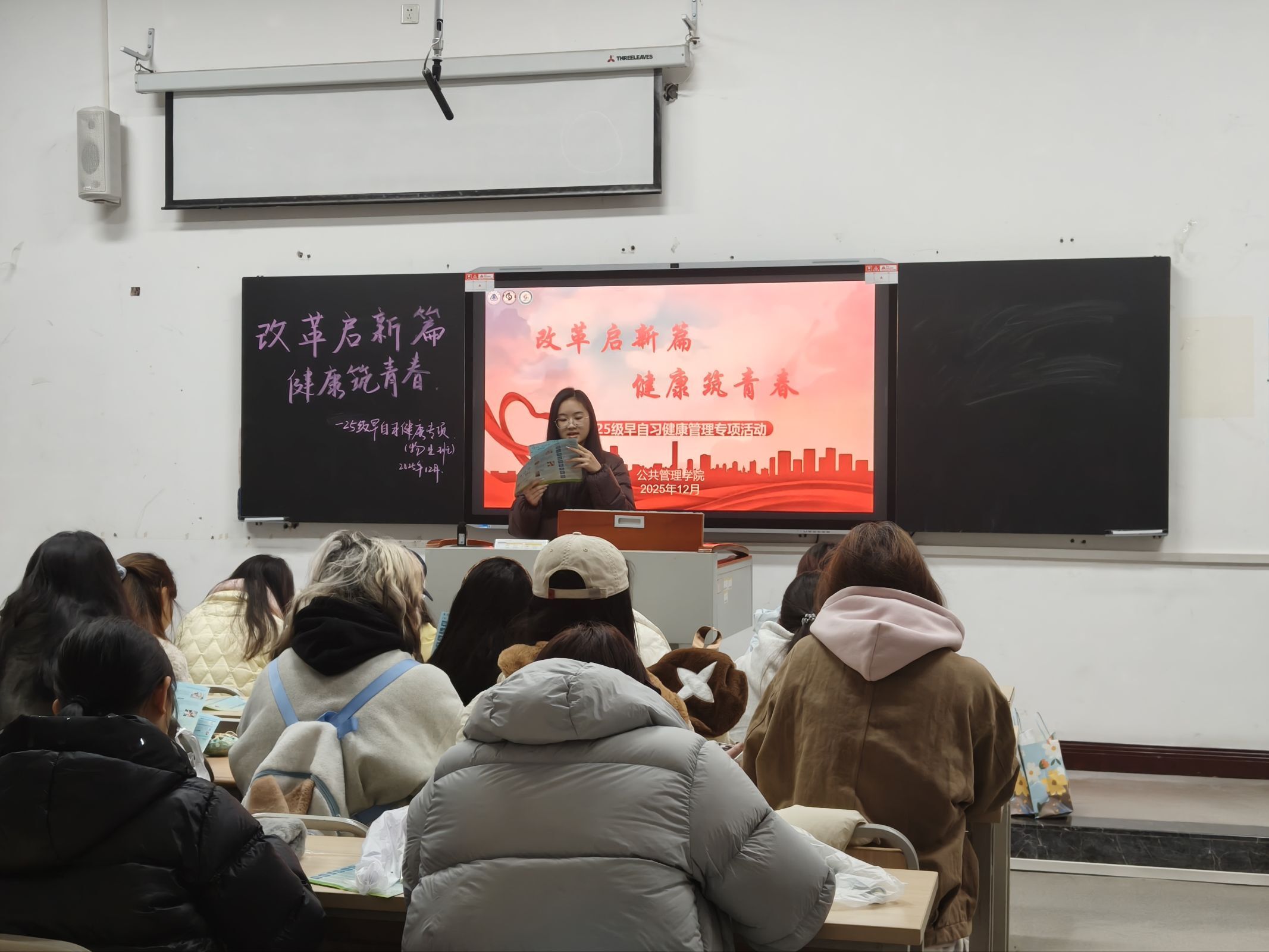 为助力重庆财经学院公共管理学院2025级新生适应早自习改革,培养适配早自习新模式的健康生活与学习习惯,12月10日,公共管理总协会精心举办“改革启新篇,健康筑青春——2025级早自习健康管理专项活动”。此次活动积极响应校园健康促进相关工作部署,深度融入“健康Π”计划核心理念,充分结合健康服务管理专业特色,为新生开启健康校园生活新篇章奠定坚实基础。