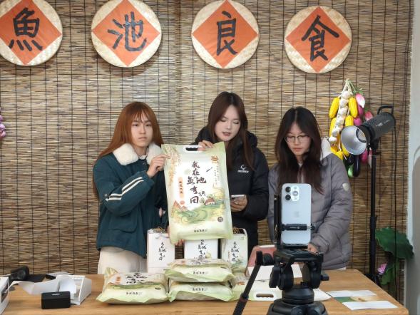 直播实践阶段,学生团队以“巴南特色农产品专场”为主题,借助“云上鱼池”网络电商运营中心进行直播带货,聚焦茶油、生态大米、手工腊肉等本土产品,借助专业所学策划直播脚本、优化产品讲解话术、联动抖音等推广平台,生动呈现产品种植工艺、品质优势与实用价值,让“藏在深山”的田间好物通过电商直播“直达餐桌”。