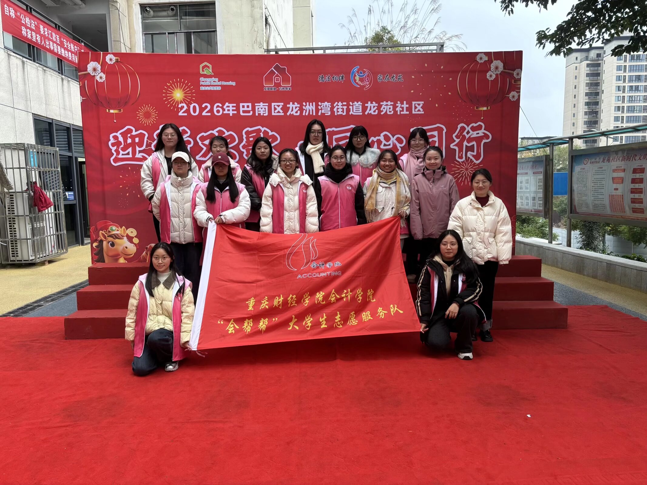 为深化“一院一镇街”协同共建机制,推动大学生志愿服务精准对接社区需求,在实践中锤炼青年学子的服务意识与责任担当,12月24日,重庆财经学院会计学院党总支组织会炬财锋服务团与“会帮帮”大学生志愿服务队,前往龙苑社区协助开展“志愿添新彩,同心贺元旦”元旦文艺汇演志愿服务活动,以实际行动彰显校地党建联建的活力与实效。