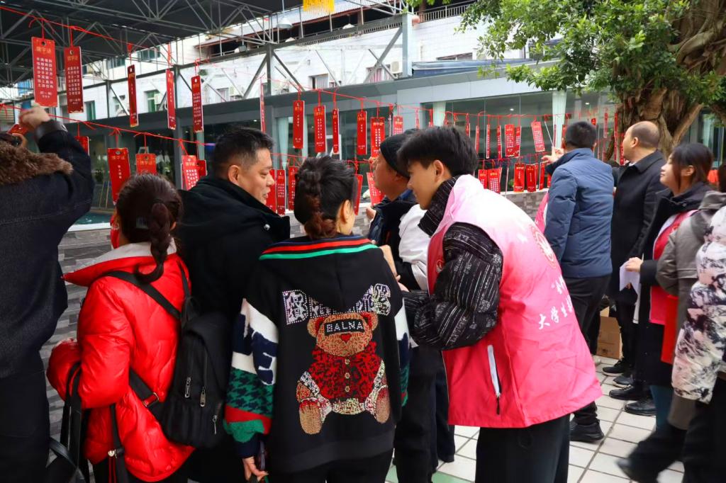 随着社区居民陆续到场,活动现场迅速升温,热闹非凡。志愿者们即刻各就各位,以饱满的精神状态、亲切热情的态度投入服务工作。写对联、猜字谜、包汤圆等一个个特色体验项目轮番上演,志愿者们耐心讲解民俗知识、细致指导操作技巧,居民们踊跃参与、乐在其中。志愿者的贴心服务与居民的热情参与相互交织、双向奔赴,让这场民俗文化节成为连接校园与社区的温情纽带,更让沉睡的传统民俗在沉浸式互动体验中真正“活”了起来,焕发出新时代的生机与活力。