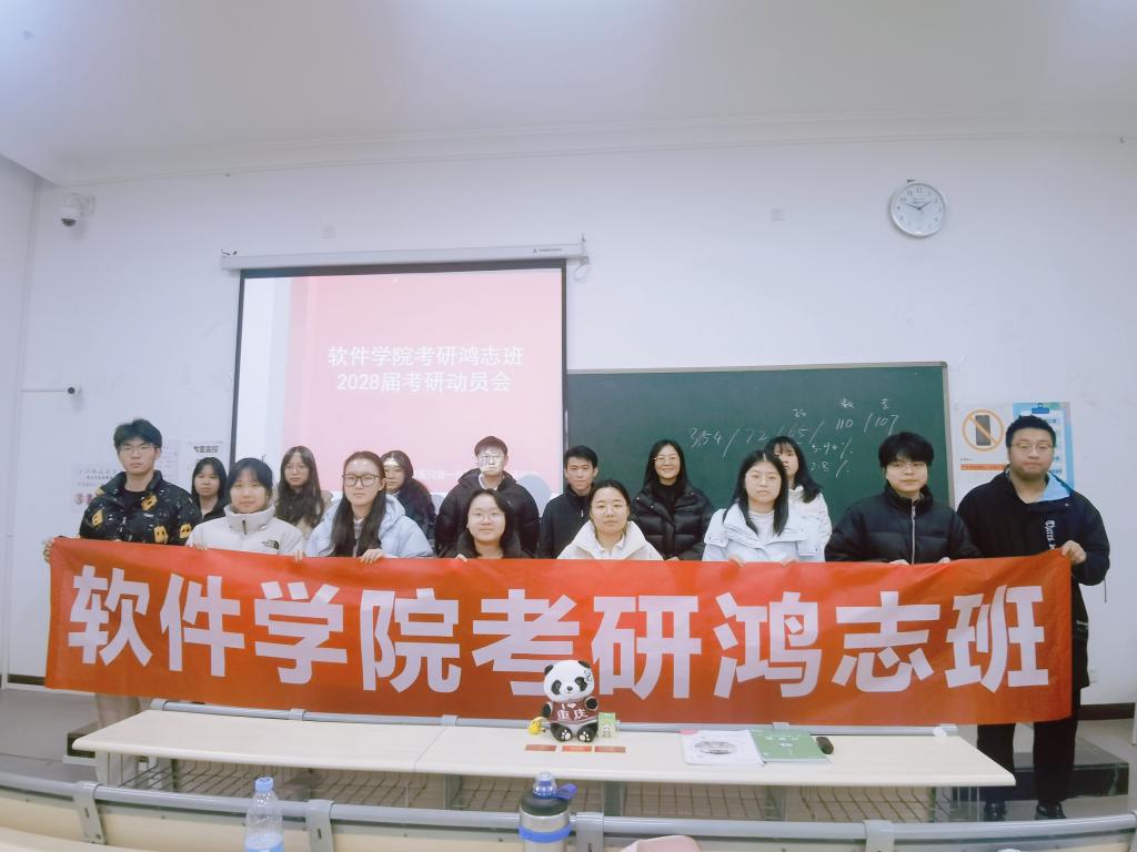 为帮助2024级学生前瞻性规划学业,树立考研目标,12月30日,软件学院于教学楼1401教室成功举办“算法筑梦,研途同行”2028届考研动员会。专业指导蒋老师应邀主讲,年级组长梁容老师及2024级100余名同学齐聚一堂,共话研途。