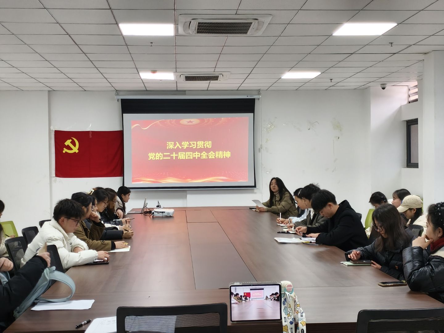 学生党支部书记马秋婵面向支部全体党员开展“学全会精神・悟青年担当” 专题宣讲。她结合学生党员的学习生活实际,对全会精神中关于青年工作、教育发展、科技创新等相关部署进行通俗化解读,重点围绕 “如何将全会精神融入日常学习”“如何在集体生活中发挥党员先锋作用” 等学生关心的话题展开交流。宣讲过程中设置互动问答环节,引导学生党员主动分享学习心得,进一步深化对全会精神的理解与把握,推动理论学习往深里走、往实里走。