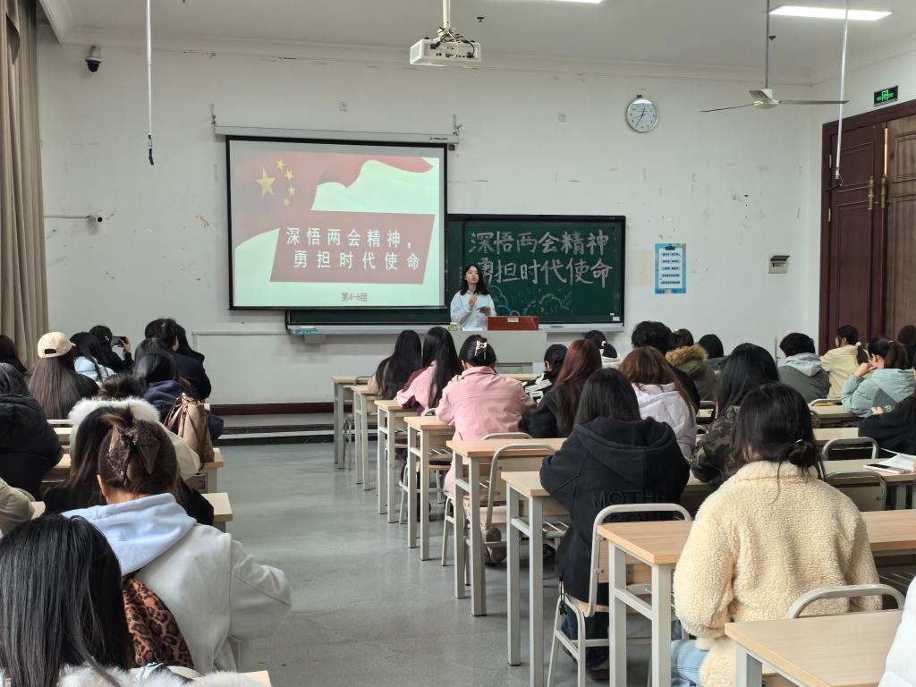 为深入学习贯彻2026年全国两会精神,引导学生党员领会核心要义、把握时代要求,3月17日中午12:30,物流工程学院(国际商学院)学生党支部在1414教室召开“深悟两会精神勇担时代使命”两会精神专题学习会。