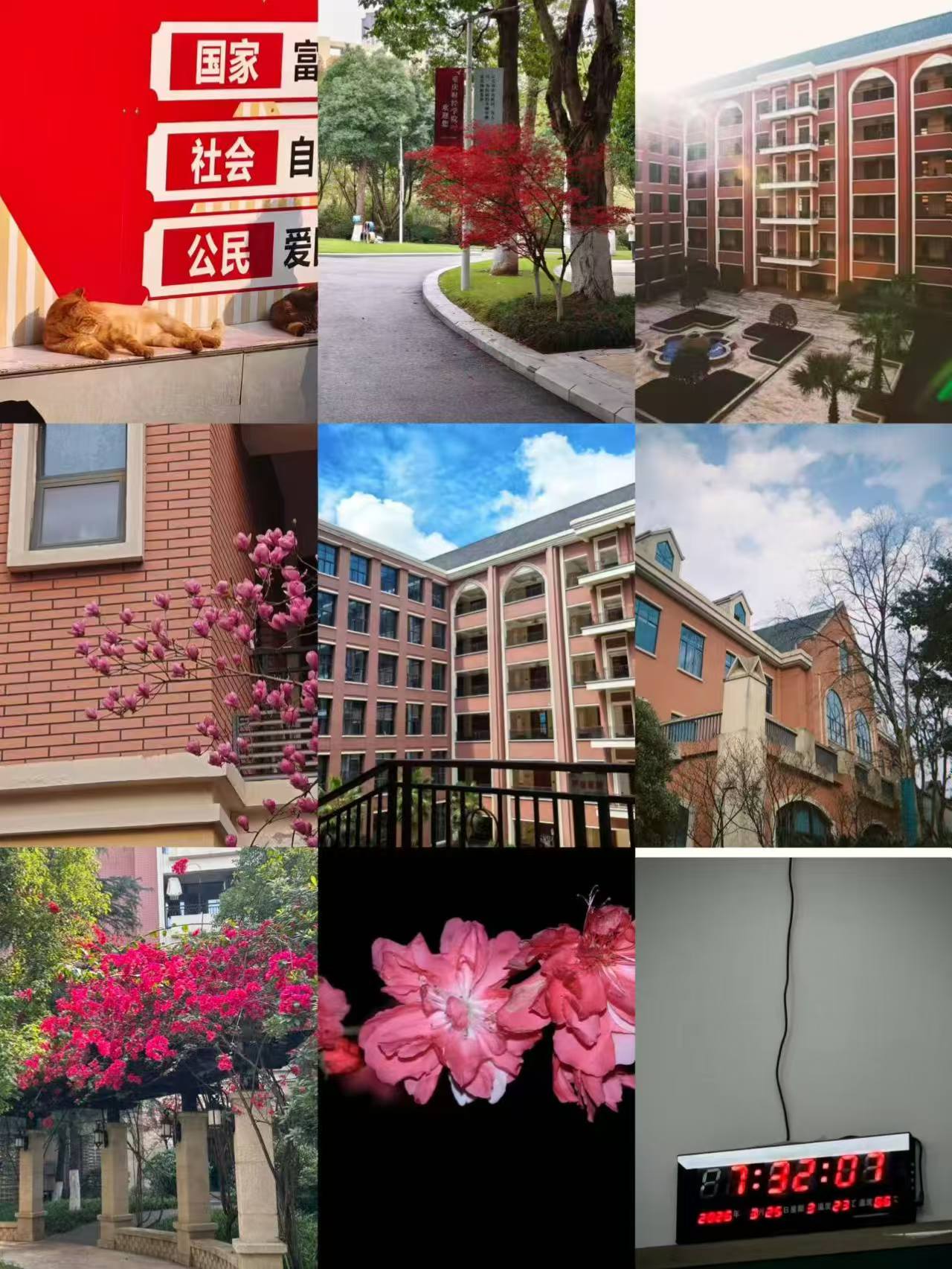 活动以“专业+爱校”展开,同学们提前选定主题色,在晨间漫步校园寻找对应色彩元素。镜头下,图书馆的砖红外墙、宿舍楼下的彩色花瓣、教学楼前的绿植新芽、运动场的蓝色标线,都成为“色彩素材”。同学们结合专业所学,用构图分析、光影捕捉技巧记录画面,将零散的色彩碎片拼贴成“校园色卡”,在实践中锤炼视听说技能。