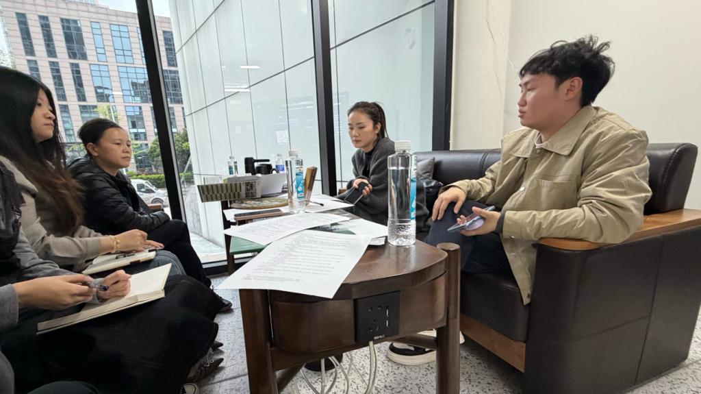 调研期间,莫紫霄主任一行在画画森林创始人陈宝昆、联合创始人潘杨陪同下,实地参观企业数字运营中心、艺术创作空间及矩阵账号孵化基地,详细了解企业市场化运作模式、新媒体账号运营体系及“阿米巴”独立核算工作室运行情况。面对企业规模化、实时化的新媒体账号矩阵,以及高度市场化的运营机制,莫紫霄主任给予充分肯定。她表示,画画森林兼具艺术创作能力与商业构建逻辑,其真实商业实战环境,是学院推进学生分流培养的优质合作平台。