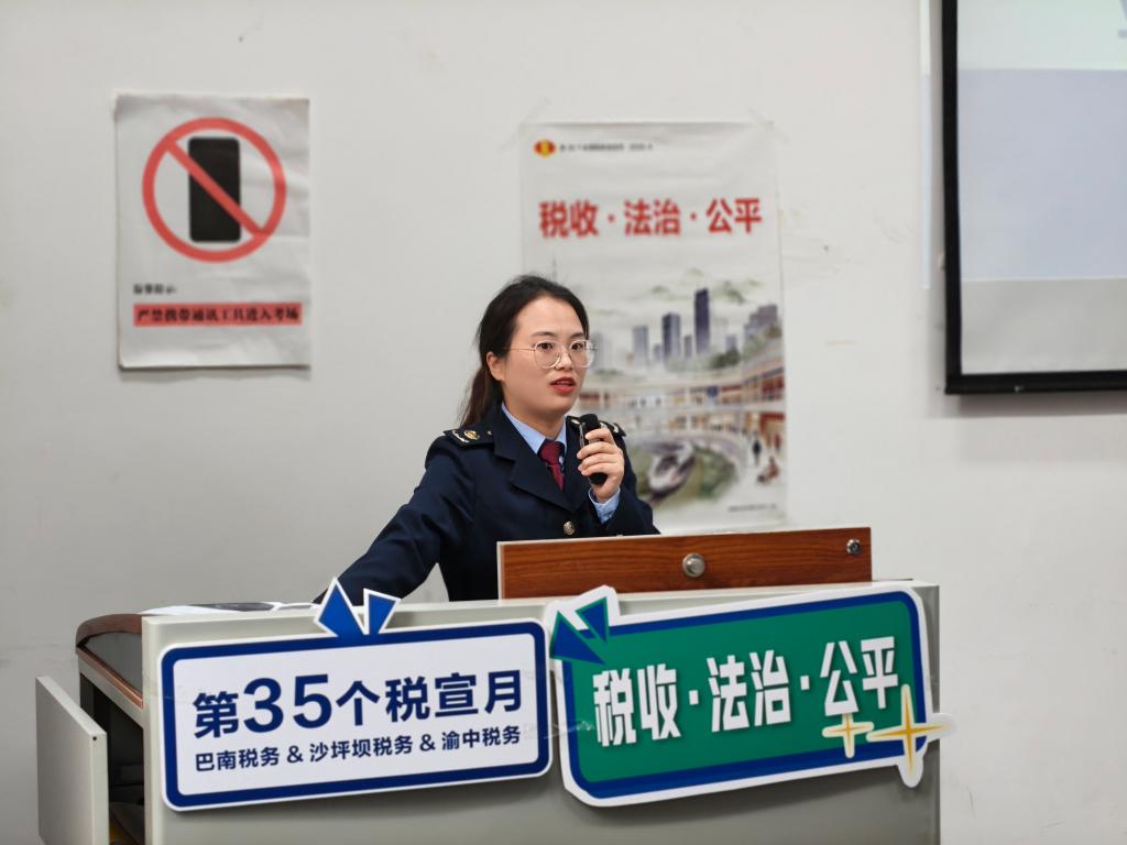 活动现场,各区税务工作人员依次开展专题宣讲,内容精准贴合大学生创业就业与民生保障实际需求。国家税务总局重庆市巴南区税务局工作人员,系统地解读企业所得税相关政策,重点讲解小型微利企业所得税优惠核心内容,为有意向创办企业、入职企业的毕业生厘清企业端税费红利,助力学子精准把握就业创业政策机遇。