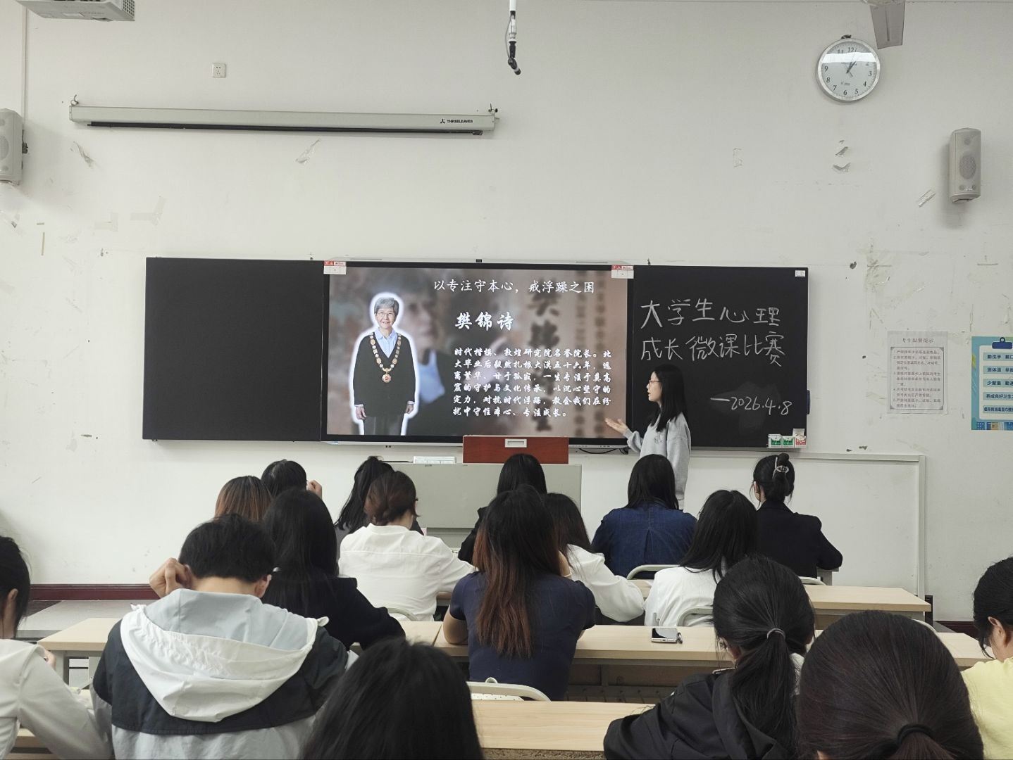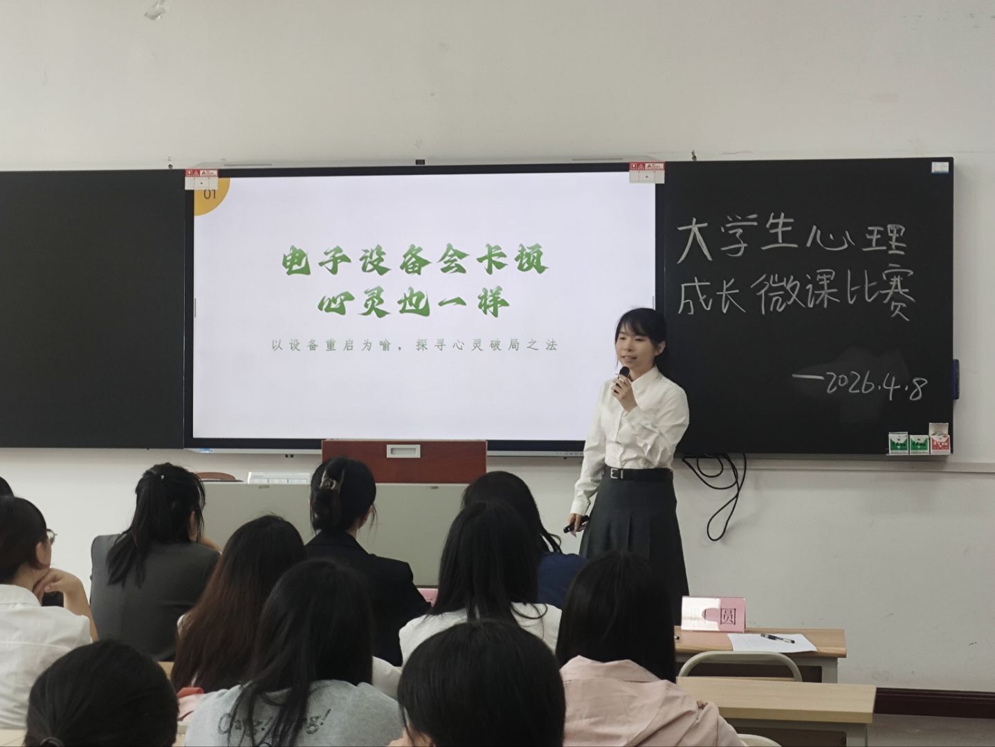为打造思政引领下丰富的心理健康教育课程,提升我院学生对心理领域的认知,传播心理健康知识并营造健康的校园心理氛围,我院于2026年4月8日在教室1422举办大学生心理成长微课大赛学院初赛。