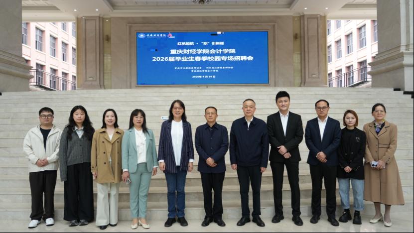 为深入落实国家就业优先战略,全力促进毕业生高质量充分就业,4月14日下午2:30,2026届毕业生春季校园专场招聘会在教学楼二楼大厅举行。本次招聘会由会计学院、招生就业处联合重庆市注册税务师协会、四川省注册税务师协会承办。重庆市注册税务师行业党委委员、市税协副会长兼秘书长黄建军、市税协副会长张万康,重庆财经学院副校长陈旭、学院党总支书记宋钰静等领导亲临现场指导。