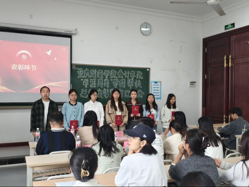 为深化学风建设,精准助力学业困难学生成长成才,4月21日中午,会计学院在1412教室召开2025-2026学年第一学期“学涯同舟”学困帮扶总结表彰暨新学期帮扶启动大会。学院党总支书记宋钰静、党总支副书记冉光波、学团办副主任陈晨、全体专职辅导员,以及全体帮扶教练与帮扶对象齐聚一堂,总结帮扶成效、表彰先进典型、部署新学期工作。