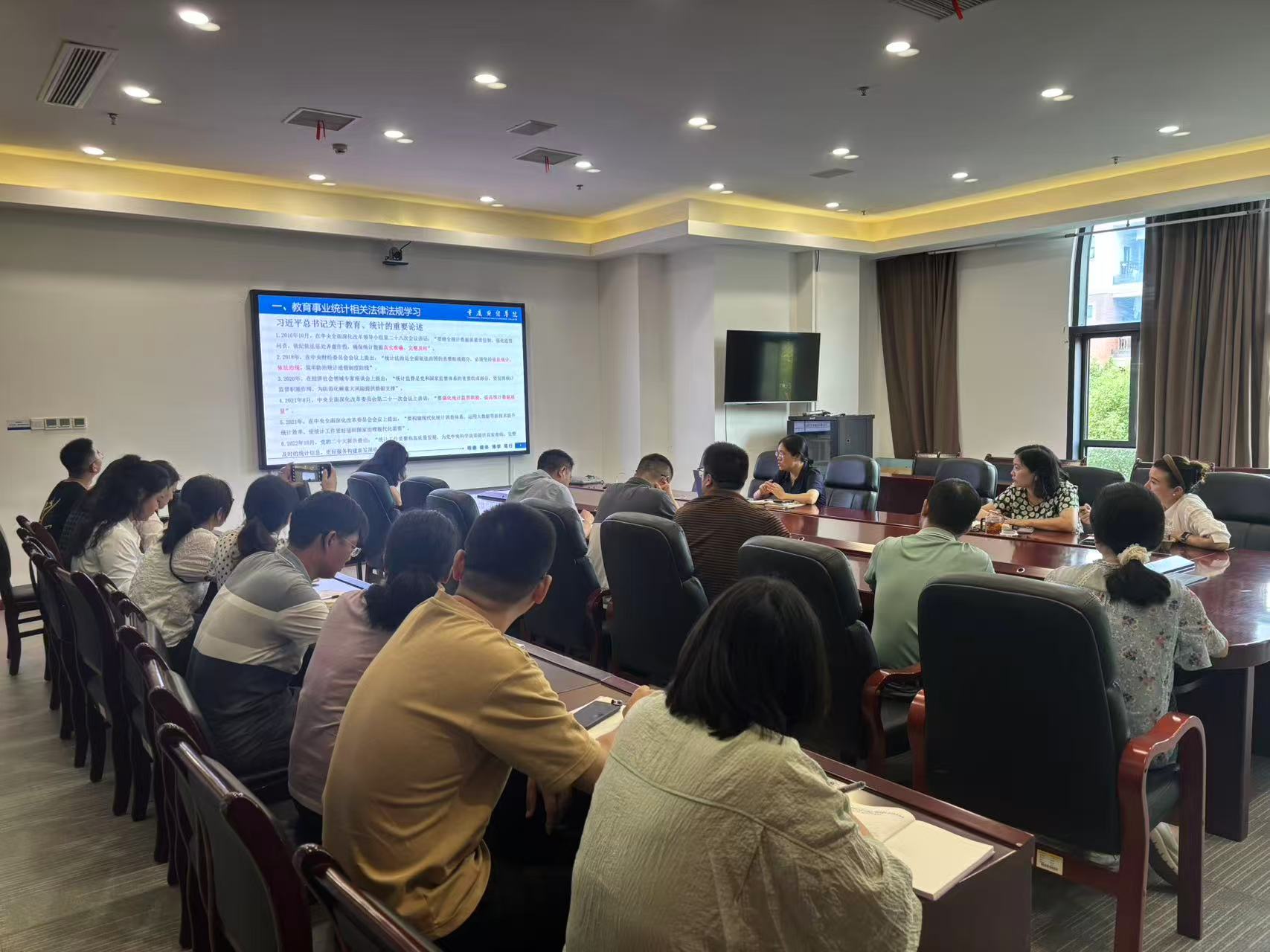 会议传达学习了教育部及重庆市关于做好教育事业统计工作的文件精神和工作要求,集体学习了习近平总书记关于教育、统计的重要论述,《统计法》等相关法律法规,强调了依法统计、规范填报的严肃性与必要性。随后,会议系统解读了2025年教育事业综合调查制度修订情况和重庆教育统计报表平台的填报范围、指标解释、数据来源和系统操作流程,结合实际进行了任务分解与工作部署,就各部门数据质量核查与报送时限提出明确要求。